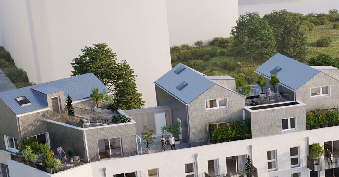 3 maisons sur les toits, dont des T3 duplex et T4 duplex avec terrasses spacieuses orientées sud