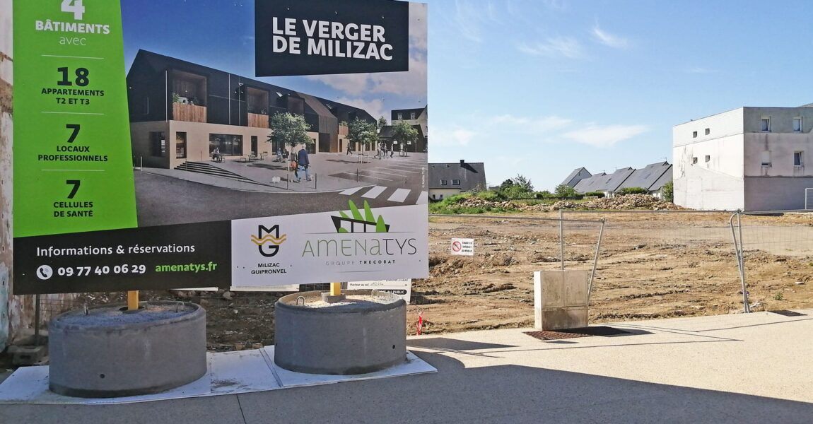 Le Verger de Milizac est un programme immobilier mené par Amenatys en plein centre-bourg de la commune de Milizac-Gruipronvel (29). Les travaux ont débuté en mai 2021 et la livraison est prévue pour fin 2022.