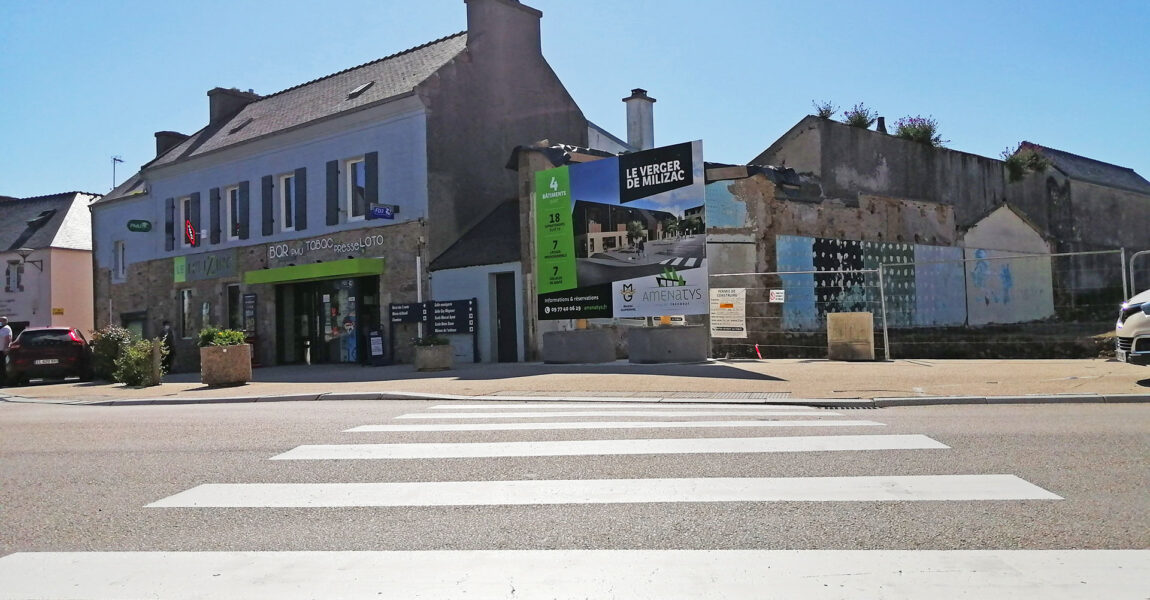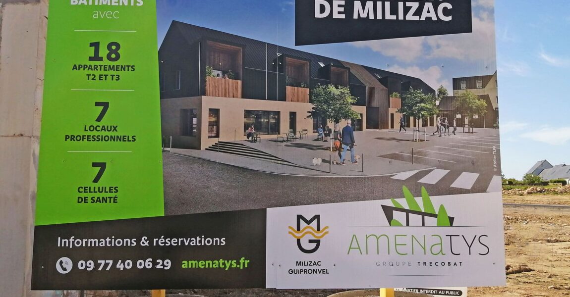 Ce projet immobilier se situe en plein centre de la commune de Milizac, dans le Finistère (29), à moins de 15 minutes de la Métropole brestoise. Les locaux sont d’ores et déjà en commercialisation, en VEFA (Vente en l’Etat Futur d’Achèvement).